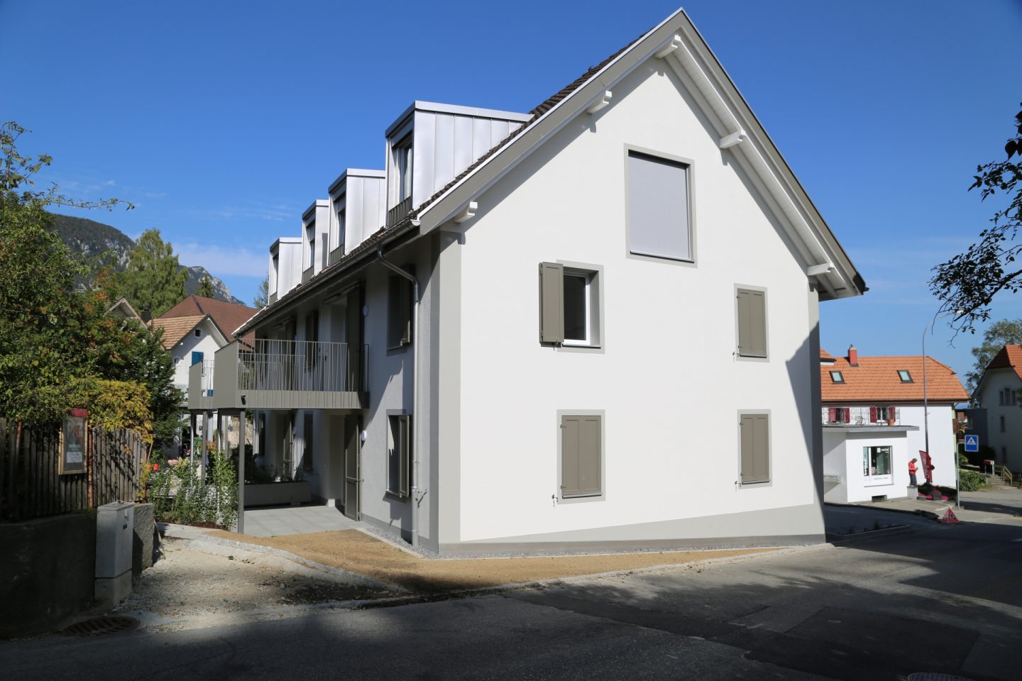 Ein gutes Beispiel für nachhaltige Entwicklung im Kleinen. Während langer Zeit befand sich die abgebrannte Ruine des einstigen Restaurants Helvetia auf diesem zentral gelegenen Areal, mitten im Dorf, gegenüber dem Gemeindehaus. Die Landeigentümerschaft wollte ursprünglich Eigentumswohnungen realisieren. CAS analysierte Chancen und Risiken und entwickelte stattdessen ein marktgerechtes Projekt mit kleinen Mietwohnungen. Die Architektur antwortet auf die örtlichen Gegebenheiten mit schlichter Eleganz und passt sich in der Volumetrie und Gestaltung der Umgebung an. Die Wohnungen überzeugen mit funktionalen und grosszügigen Grundrissen.
