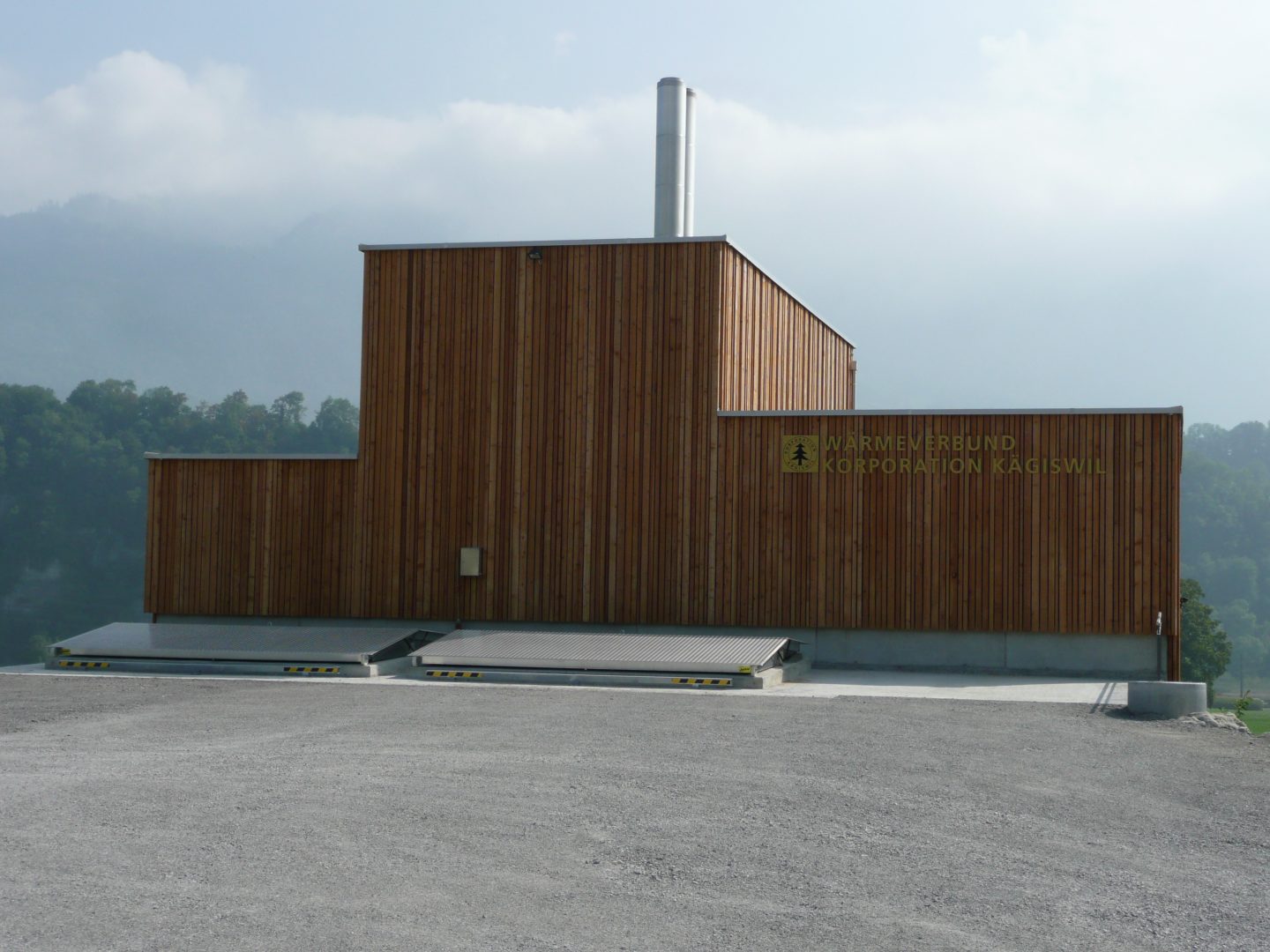 Die neue Schnitzelfeuerung der Korporation Kägiswil kam an den östlichen Rand des Dorfes zu liegen und grenzt an offenes Landwirtschaftsland. Bei der Situierung des Volumens war die Lage der Nachbarbauten und der Grundstückgrenzen ausschlaggebend.