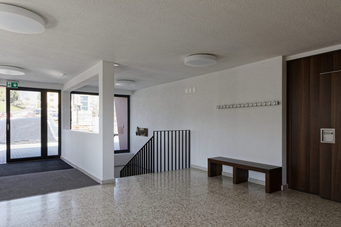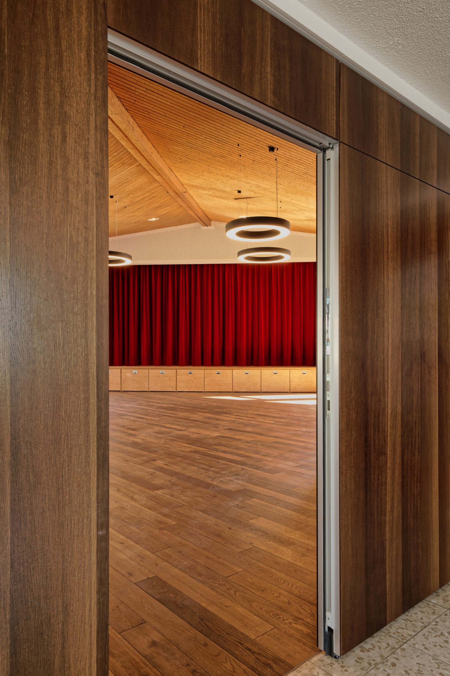 Ein spannendes Projekt, das zahlreiche Herausforderungen bereithielt, angefangen von der Statik der Fenster bis hin zu den Brandvorschriften oder dem Asbestvorkommen bei den alten Plattenbelägen. Beim Umbaukonzept wurde viel Wert auf Details gelegt. Infrastruktur, Küchengestaltung, Bühnenaufbau oder die Faltschiebewand beim Eingangsbereich entsprechen den Erwartungen der Bauherrschaft nach einem modernen, vielseitig nutzbaren Begegnungszentrum. Das sich durch den ganzen Bau ziehende Farbkonzept und der markante Parkettboden unterstreichen den einzigartigen Charakter.