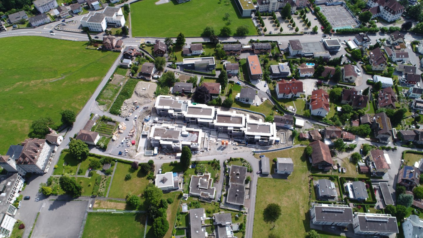 Vorstellungen von Lebens- und Wohnqualität mit klarer Architektur zeitgemäss interpretiert. Die Wohnüberbauung umfasst sechs leicht versetzte Baukörper.